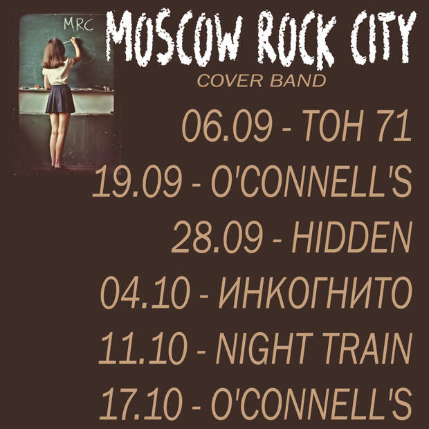 19 СЕНТЯБРЯ — сольник в 2 отделениях в баре O'Connell's на Покровке! Билеты: https://muzpolka.ru/events/moscow_rock_city/
